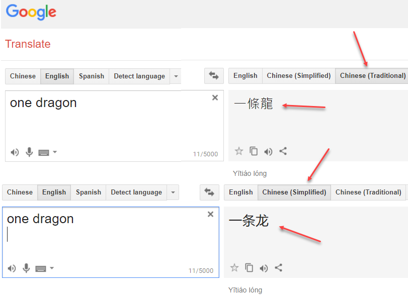 If I say “one dragon”, it’s 一条龙 (or Yītiáo lóng) in simplified Chinese but in traditional characters, it’s 一條龍.